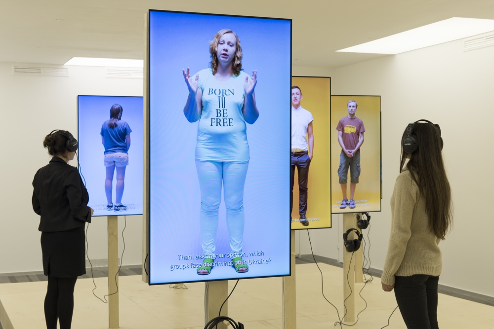 CT Your piece Patriots, Citizens, Lovers… (2015) seems different from your other recent works. It features interviews with eleven Ukrainian LGBTI activists who put themselves at risk by publicly speaking out about their lives and work. I even noticed that one interviewees’ face, Oksana’s, is blurred in the video. With this work you seem to be returning to the documentary approach of We Who Feel Differently, but this piece has a more heightened sense of urgency due to the political crisis in Ukraine regarding the war with Russia and the repression of LGBTI lives.