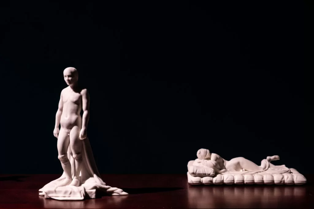 Motta's research-based work is divided into two main themes: On the one hand, projects that reflect on the construction of sexuality and gender as categories of knowledge during the conquest and the early period of colonialism in the Americas. Work like Nefandus (2013) belong to this group, which explores the colonial history of persecution of dissident sexual/gender identities; the miniature sculptures from Towards a homoerotic historiography (2014); Deseos (2015) which follows the epistolary correspondence between two women in the 19th century; and Corpo Fechado: The Devil's Work (2018), a video that tells the true story of an enslaved man who was tried for sodomy and witchcraft in Portugal in the 18th century, are projects that investigate the construction of sexuality and gender as categories of knowledge during the conquest and the early era of colonialism in America.