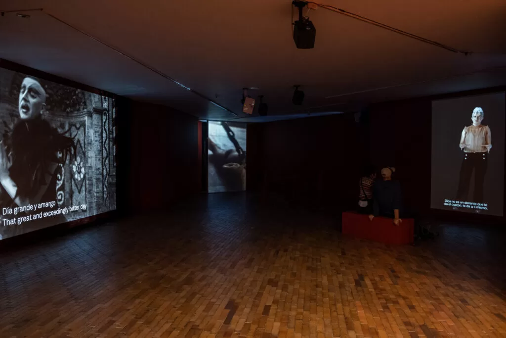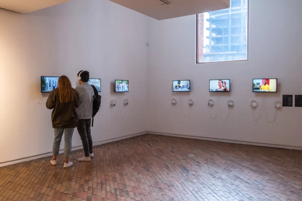 On the other hand, the artist explores critiques of democracy from the perspective of marginalized communities. This group of projects includes Six Acts: An Experiment in Narrative Justice (2010), which documents a series of public performances about peace speeches delivered by left-wing Colombian politicians; We Who Feel Differently (2012), which explores the idea of sexual and gender “difference” in various geographic and cultural contexts; and Patriots, Citizens, Lovers… (2015), a work that presents video testimonies from Ukrainian queer and LGBTIQA+ activists about the critical situation that lesbian, gay, trans and intersex populations face in times of war.