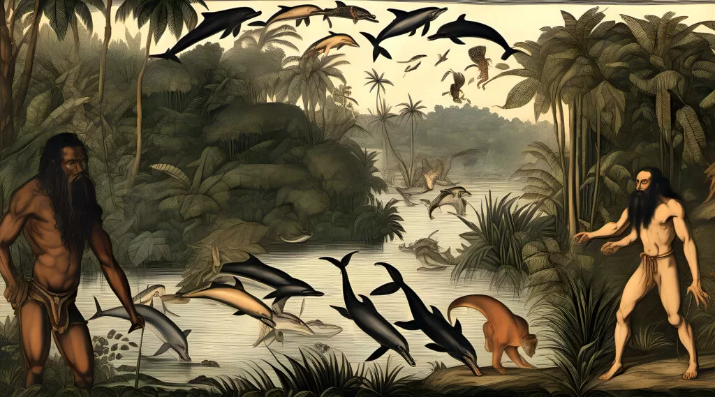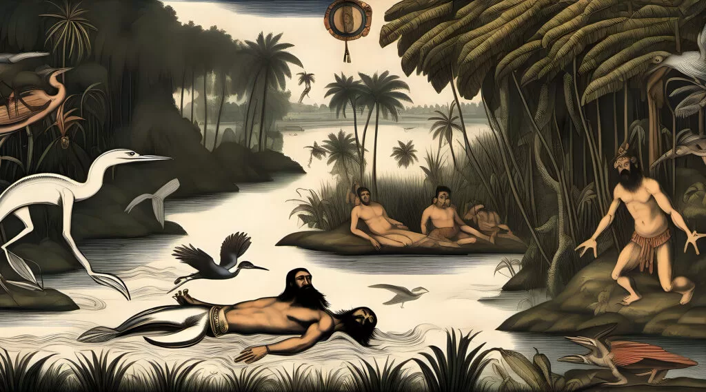 The prints in Descubriendo el nuevo mundo are part of a portfolio of images generated with an artificial intelligence (AI) program that evoke Renaissance visual, historical, and aesthetic references. Using precise prompts for their creation, the images are collages that appear, at first glance, as traditional engravings; and at second glance, as digital prints of complex interpretation. In them, the landscape and the subjects that inhabit it are imaginary and fantastical, even though they resemble well-known and popular historical scenes. The portfolio's title refers to the work of the Flemish engraver Theodore de Bry, who documented encounters between European conquerors and Amerindians, based on chronicles of 15th- and 16th-century travelers, creating a unique visual imaginary where the violence of the conquest is fundamental to the representation of cultural, ethnic, racial, and other differences.