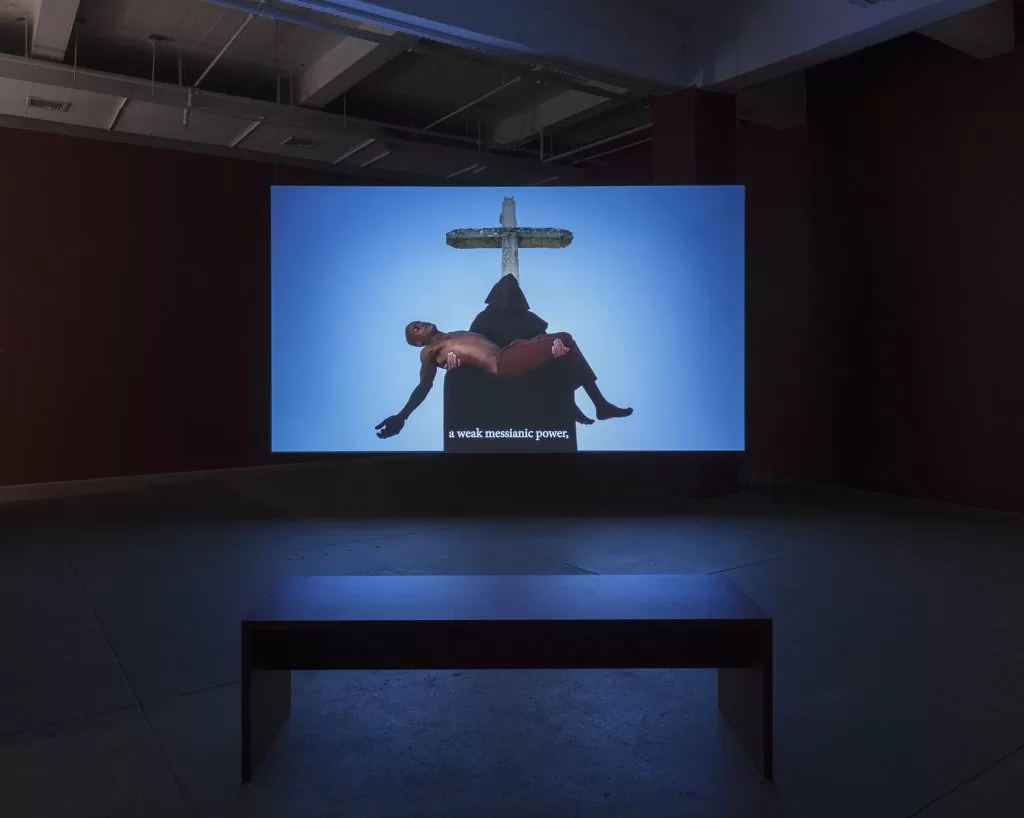 This exhibition is named Conatus, the Latin word for ‘striving, endeavor, inclination.’ ‘Conatus’ means the desire of each person or thing to persist in itself. For Baruch Spinoza it signified a vitalism at the heart of an impersonal universe. For Judith Butler it means the drive for mutual recognition and representation. Throughout this exhibition, desire and selfhood entwine, and persistence endures under the most adverse of circumstances. Historical traumas erupt into the present. Baroque performance restages allegories of history. Gods sin, devils redeem, and oppressive imprecations become the litanies of survival. Conatus persists through it all, a throbbing, desirous vitality just discernable beneath the din of our historical present.