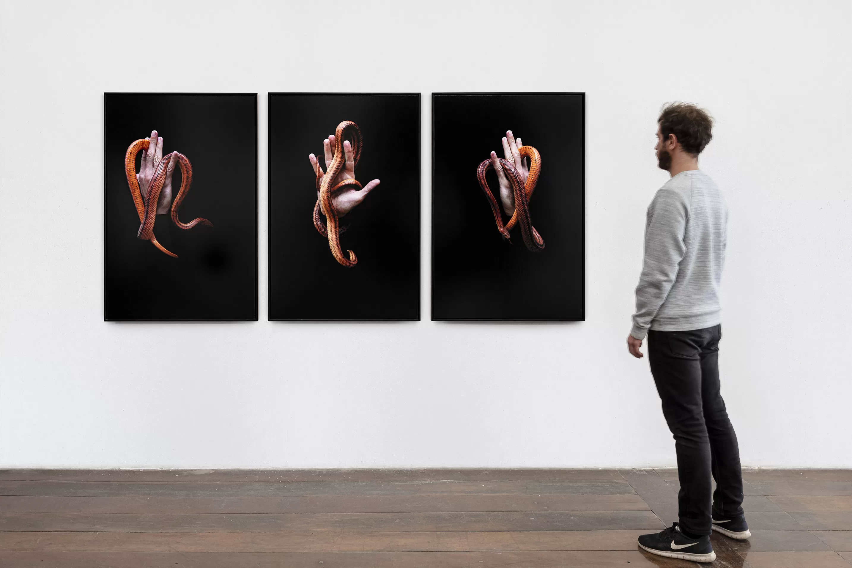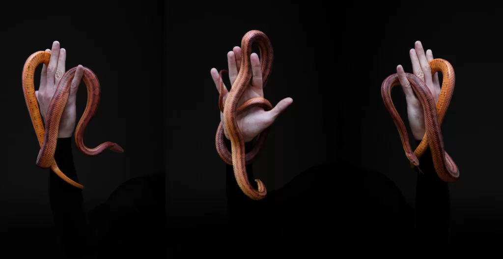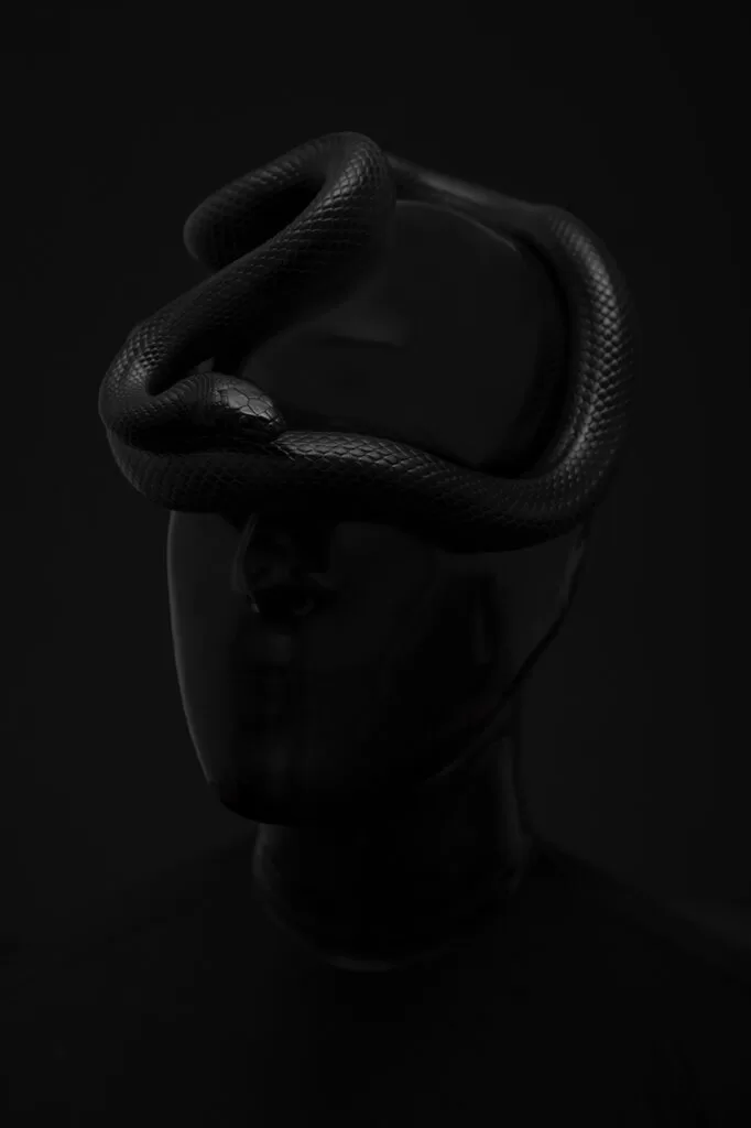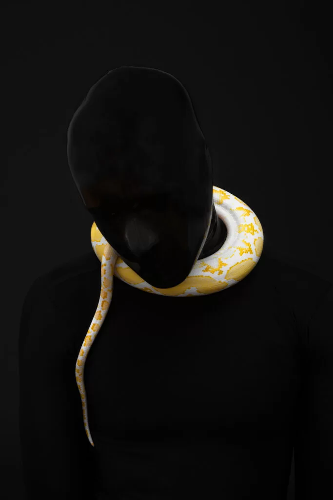 The title of these photographic self-portraits, Midway upon the journey of our life/I found myself within a forest dark,/ For the forward pathway had been lost, cite the opening lines of Dante’ Inferno. In this famous verse, the poet strays from the straightforward path, losing his way on a dark and circuitous road. It is precisely its darkness and its convolutions that mark this trail as the way of sin and the passage to hell. The same is true of the primordial Serpent, whose lithe and twisting body betrayed its sinful destiny even before the Fall. After all, a ‘deviant’ is one who turns away, one who strays, one who meanders in sinuous routes. In accord with Dante’s law of contrapasso, moving off the prescribed track will be punished by forcible dislocation: deviants shall be banished. Dante and Satan both were sentenced to exile—driven out from their homelands.